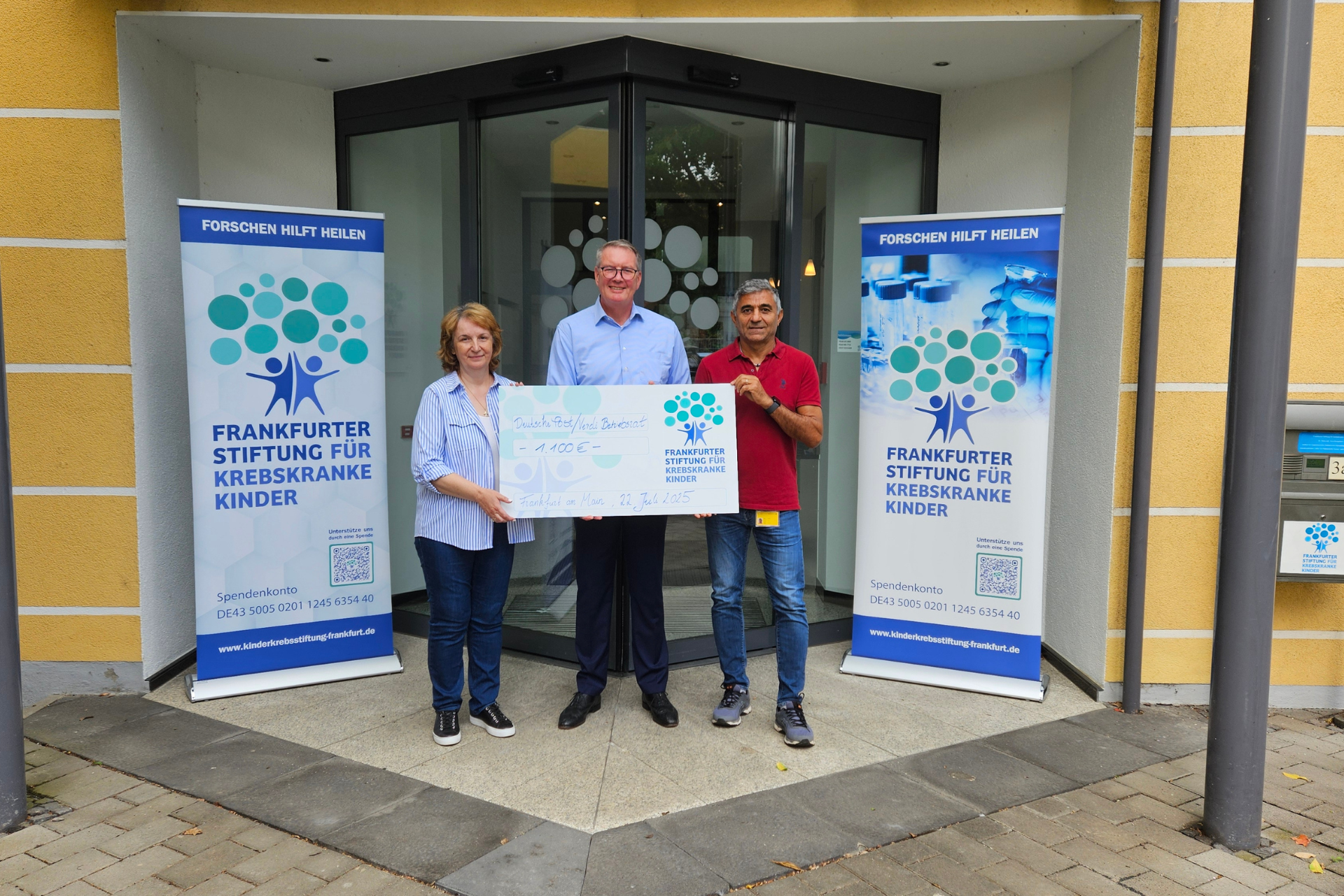 Die Frankfurter Stiftung für krebskranke Kinder durfte heute besonderen Besuch empfangen: Frau Angeliki Kakali (Betriebsrat der Deutschen Post) und Herr Seref Yurdakul (Deutsche Post) überreichten uns eine Spende in Höhe von 1.100 Euro, die im Rahmen einer Postveranstaltung zusa…