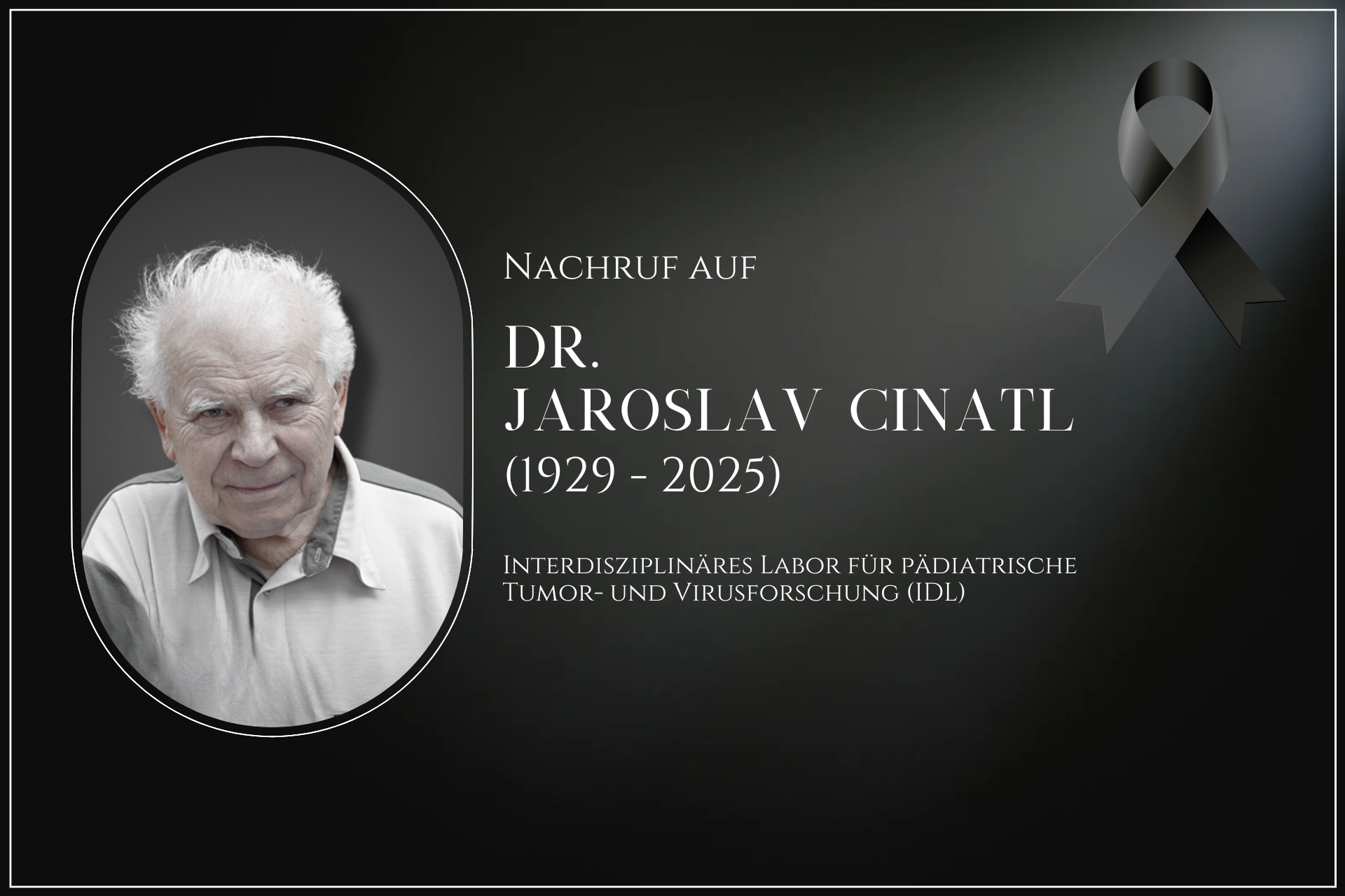 Am 20. Juni 2025 verstarb Dr. Jaroslav Cinatl im Alter von 96 Jahren. Mit ihm verliert die medizinische und wissenschaftliche Gemeinschaft einen außergewöhnlichen Arzt, Forscher und Menschen, dessen Lebenswerk weit über die Grenzen eines einzelnen Fachgebiets hinausreicht.