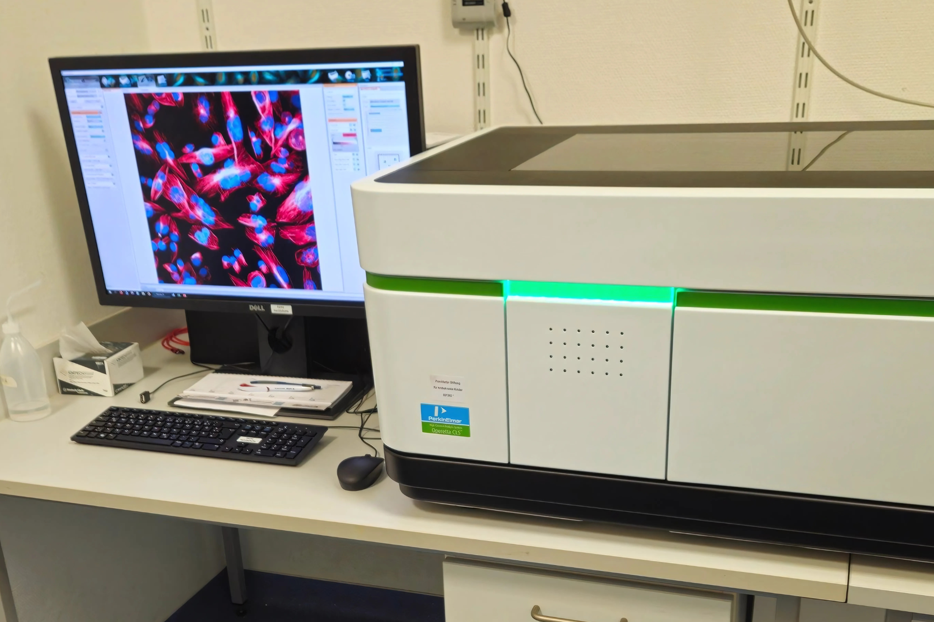 Mit dem Operetta CLS (High Content Analysis) System kann dies in hoher Geschwindigkeit geschehen: das Gerät arbeitet im Hochdurchsatz-Screening (HDS) und kann biochemische, genetische oder pharmakologische Tests mit Zehntausenden bis Millionen von Substanzen in kürzester Zeit durchführen. Mittels der präzisen und automatisierten Bildaufnahme mit schnellem Probendurchsatz wird insbesondere nach neuen, biologisch aktiven Substanzen gesucht. Aus diesen können dann Leitstrukturen abgeleitet werden, um neue Arzneistoffe zu entwickeln. Hierdurch lassen sich neue therapeutische Angriffspunkte identifizieren.