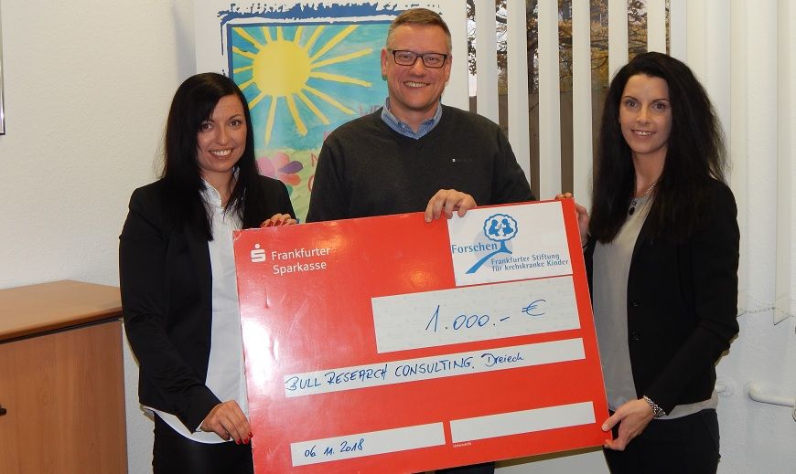 Instead of Christmas presents, BULL RESEARCH CONSULTING from Dreieich is supporting the work of our foundation this year with a cheque for 1,000 euros.