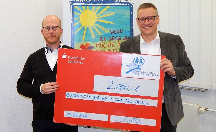 The company euromicron Deutschland GmbH, represented by its Marketing Manager Uli Schunk (left in the picture), presented our Managing Director Dirk Kammertöns with a monetary donation of 2,000 euros on 18 December. Euromicron is again doing without ducked Christmas cards this y…