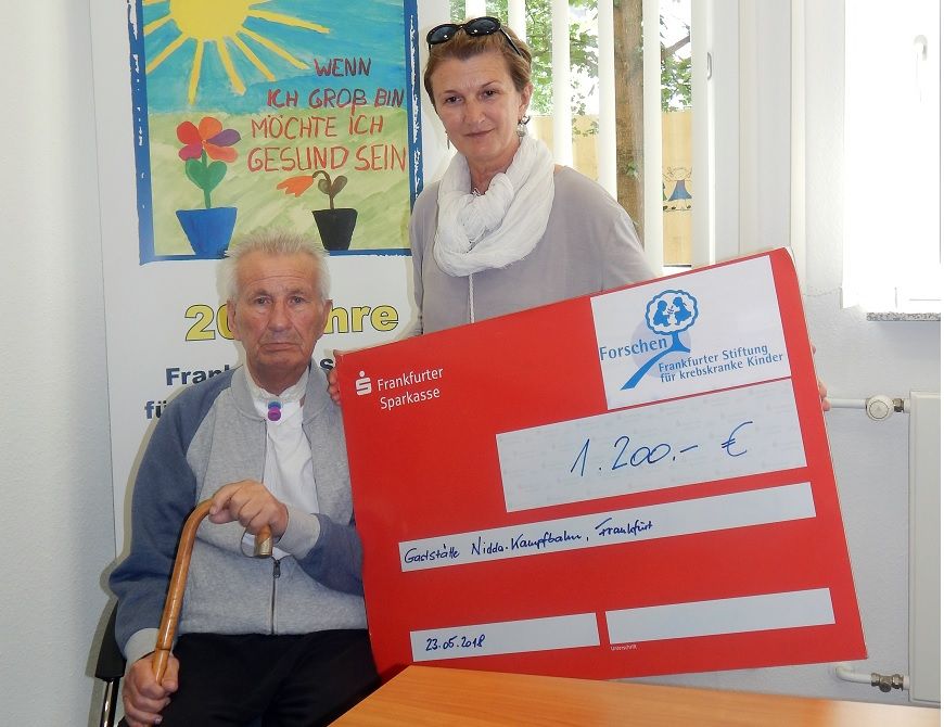 On 23 May, Mirjana Massieu and her father were guests at the Research House. The occasion was a donation of 1,200 euros from the Nidda-Kampfbahn restaurant.