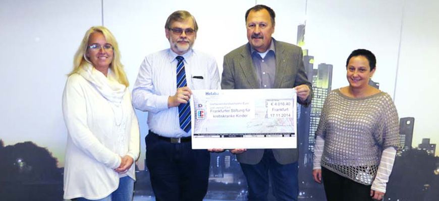 from left: Claudia Schütz, Siegmund Wiecha, Rudolf Starck (Managing Director of the Frankfurt Foundation for Children with Cancer) and Alina Meyer. The Frankfurt Foundation for Children with Cancer receives a donation of 4016.40 euros from the employees of Stadtwerke Verkehrsges…