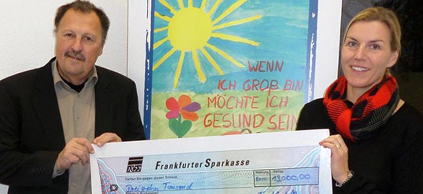 from left: Rudolf Starck (Managing Director of the Frankfurt Foundation for Children with Cancer) and Mrs Katja Schultheiß (Candidus Foundation). The Frankfurt Foundation for Children with Cancer receives a donation of 13,000 euros from the Candidus Foundation.