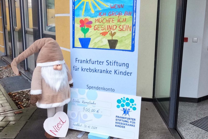 On 30 December 2021, we had a visit from Secret Santa Vincent from Nied. He came accompanied by Mary Massieu and brought a Christmas present for the children and young people with cancer: 900 euros, which had been collected in the course of the year in the Nidda-Kampfbahn restau…