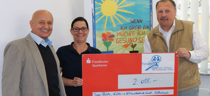 von links: Herr Dieter Auth (Firmengründer der Fa. Auth Klima- und Kältetechnik GmbH, Offenbach), Rudolf Starck (Geschäftsführer der Frankfurter Stiftung für krebskranke Kinder), Frau Carola Auth (Finanzen/Controlling der Fa. Auth Klima- und Kältetechnik GmbH, Offenbach)
