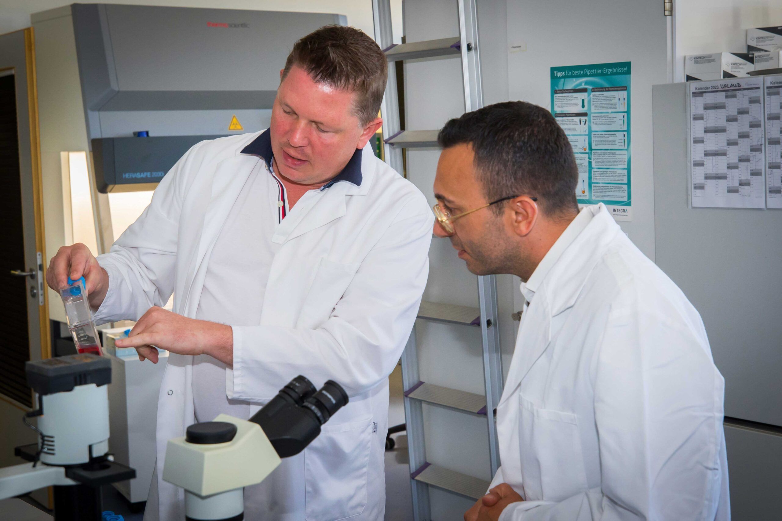 Im stiftungseigenen Dr. Petra Joh-Forschungshaus in Frankfurt-Niederrad ermöglicht die Frankfurter Stiftung für krebskranke Kinder bis zu 60 Wissenschaftler*innen Kinderkrebsforschung auf höchstem Niveau.