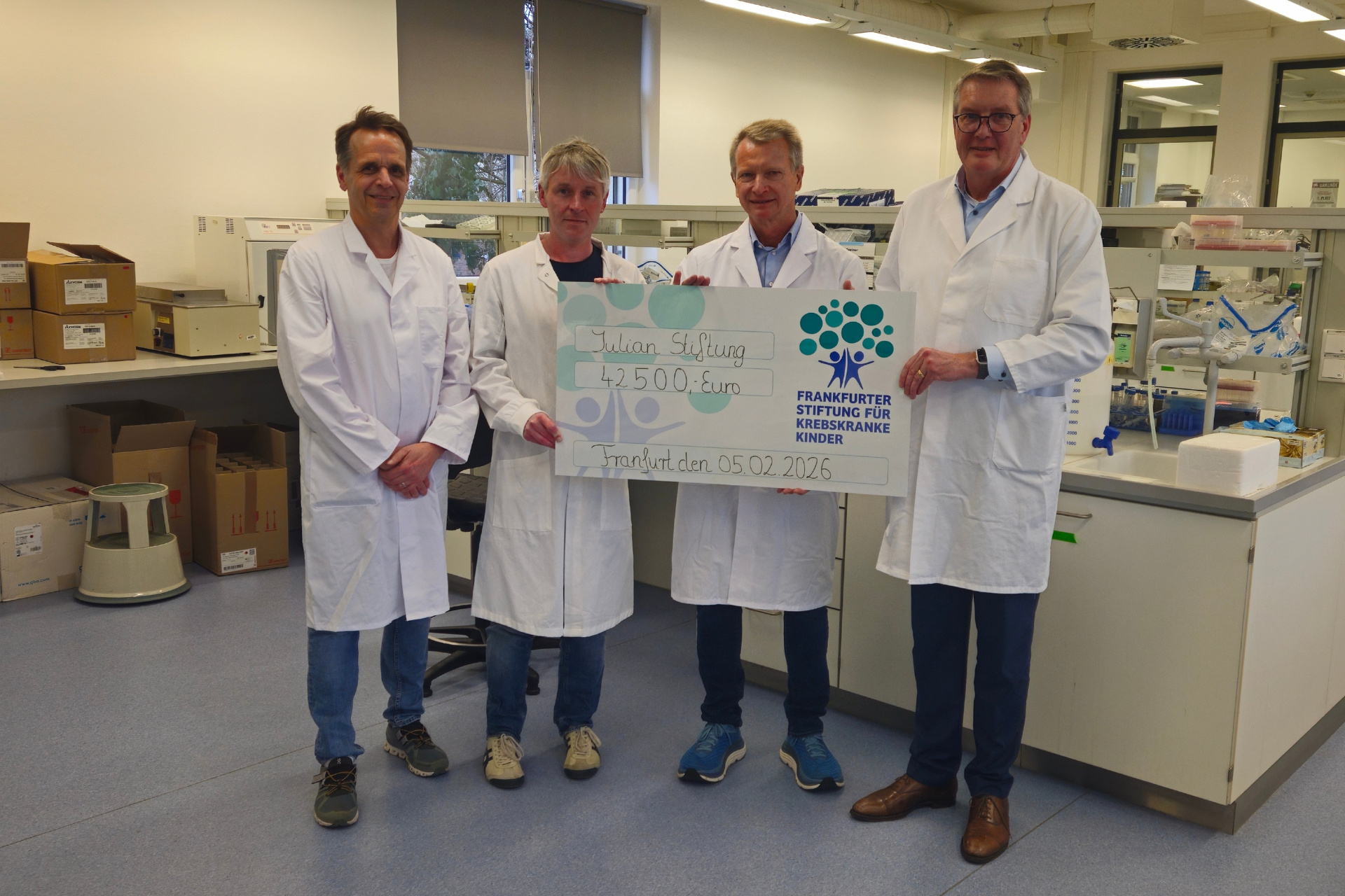 Die Frankfurter Stiftung für krebskranke Kinder bedankt sich herzlich bei der Julian Stiftung für eine großzügige Spende in Höhe von 42.500 Euro. Diese bedeutende Unterstützung leistet einen wichtigen Beitrag zur Weiterentwicklung unserer Kinderkrebsforschung und damit zur Verbe…